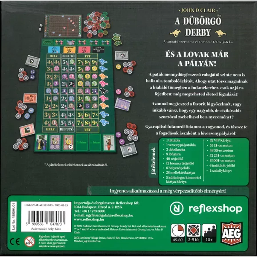 A dübörgő derby a lóversenyfogadások idegborzoló izgalmait fordítja le a társasjátékok nyelvére. Mersz rizikót vállalni és megteszed a legnagyobb szorzóval rendelkező lovakat? Vagy beéred a favorittal és a biztosabb summával? Készítsd a hangszálaidat is, hiszen mikor láttál a lovi lelátóin némán ülő embereket? Tombolj és szurkolj a lovaknak, ünnepeld a győzelmedet, és zsebeld be a zsetonokat!